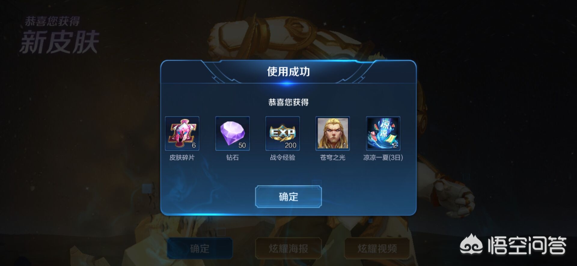 先看第一位玩家所拿到的奖励吧,这位玩家抽到了一定的皮肤碎片,钻石,相应的战令经验,还有苍穹之光,这个奖励还是挺不错,至少为自己省下了几千点券,比起那些单纯抽到了一铭文碎片或者是钻石碎片的玩家好多了。