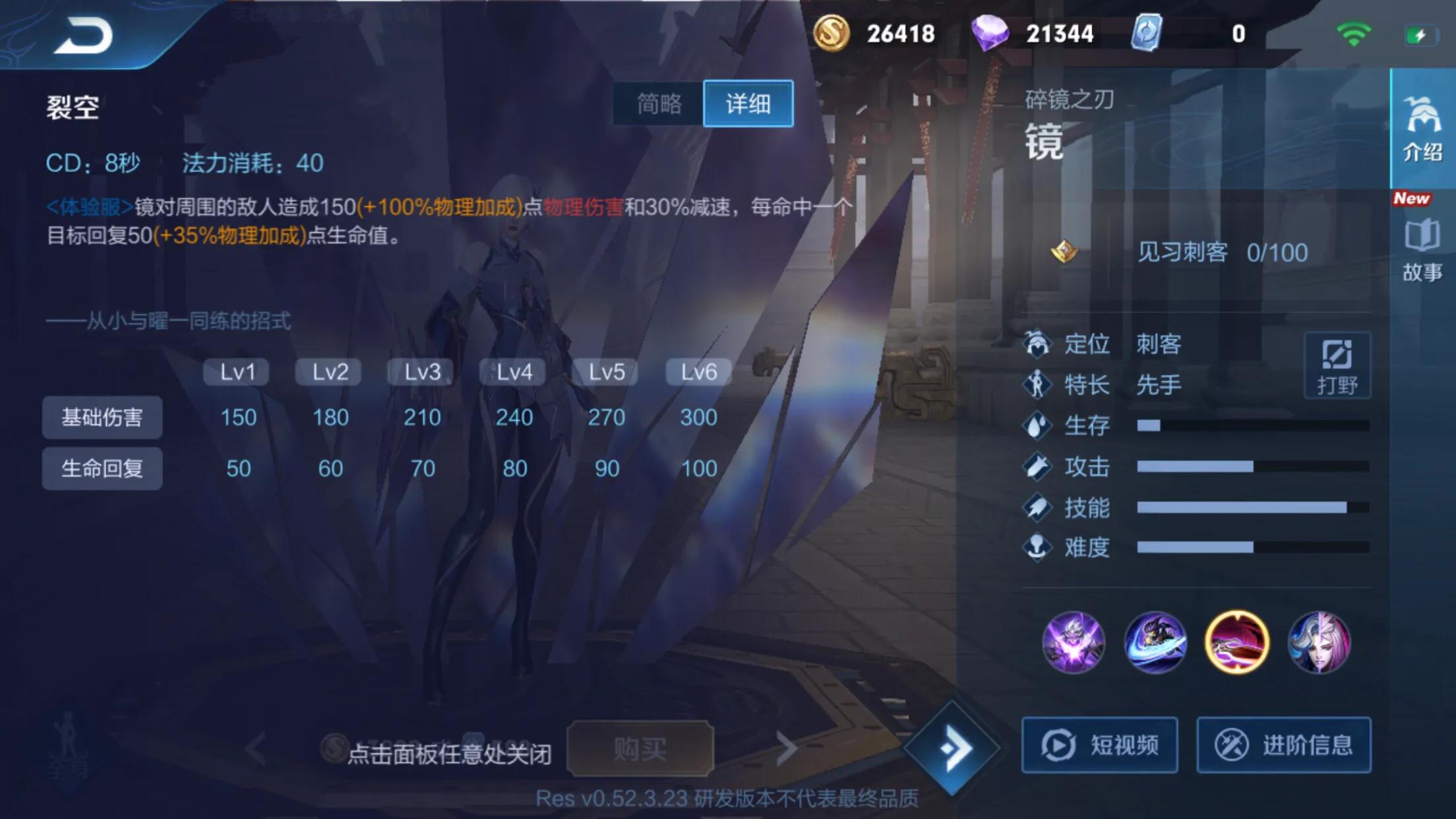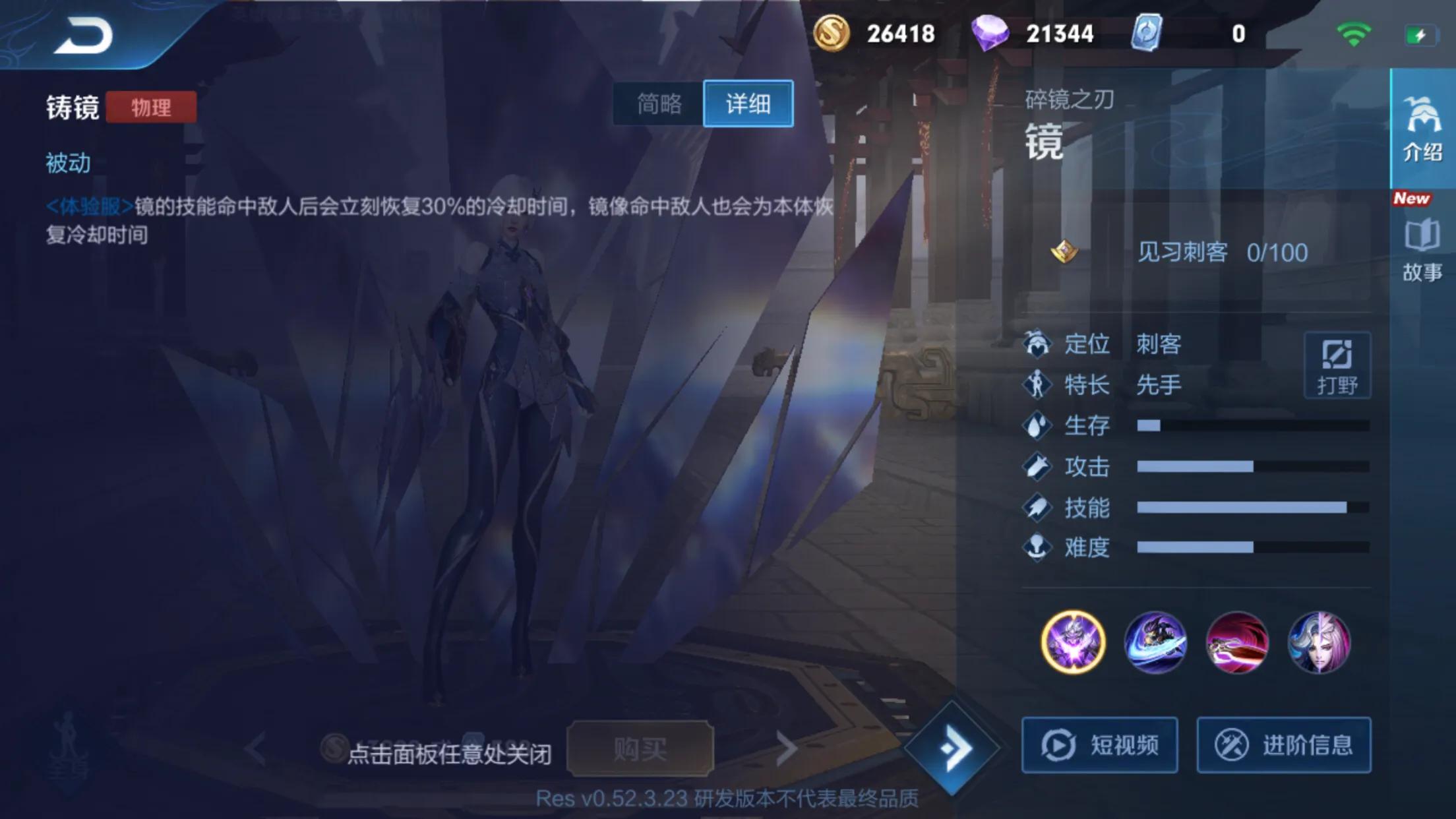 首先,镜的定位是刺客。有一定的操作难度,但是因为官方不想以“纯粹的操作难度”作为追求目标,所以对她的技能进行了一次较大的调整,尽可能让技能传递出角色的个性,并让玩家可以在对抗中体验到英雄本身的特色。