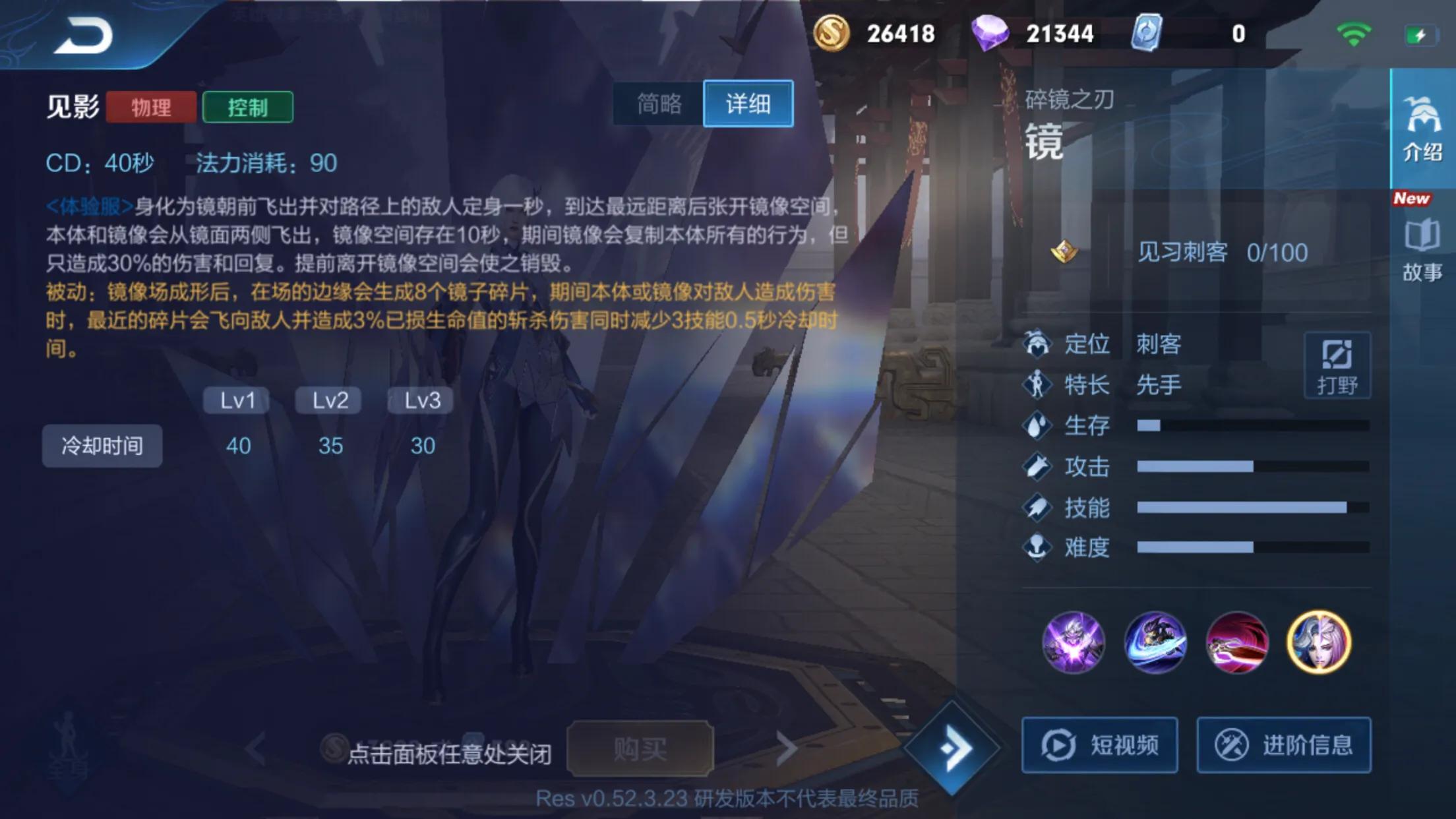 镜定位刺客,特长突进收割,适合打野与三路gank,镜在体验服多次调整后,其技能机制与最初开测时有所不同,比如被动调整为镜的本体与镜像攻击敌人会留下两种不同印记,只要目标集齐两种印记就会触发斩杀伤害,并刷新1/2技能CD,需要注意的是这个效果触发后5秒内不能再次触发,若开启大招的话则变成2秒内不能再次触发,意味着开大期间镜可以更高频次打出斩杀伤害收割和刷新CD持续打击目标!