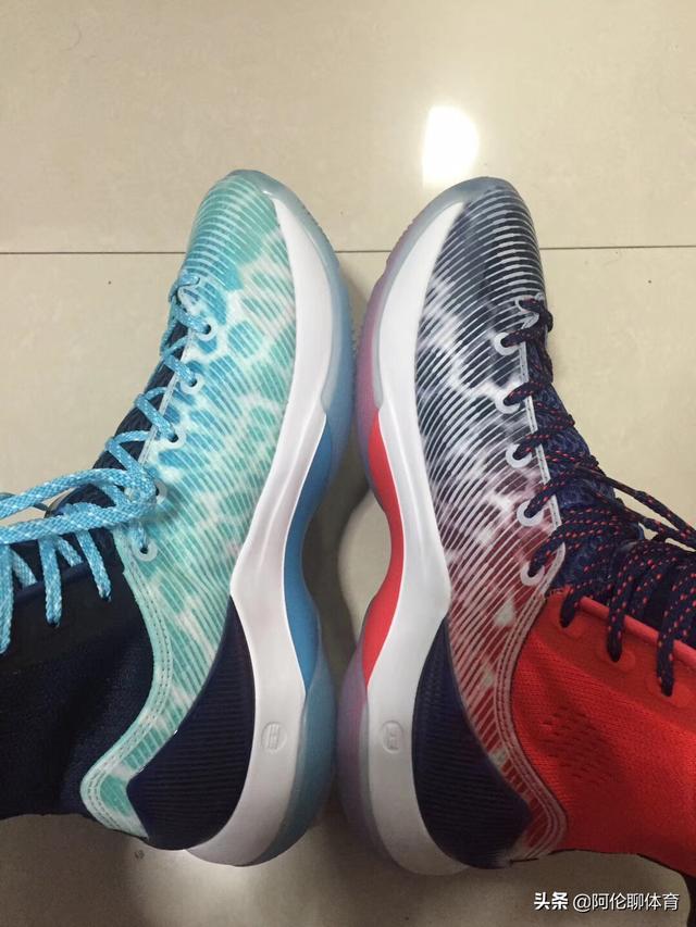 李宁驭帅11。我的第一双战靴,现在估计掉到300露头了,不吹不黑,那双鞋穿了两年,不管是颜值和实战都倍儿棒,水晶底超耐磨,打过各种场地(底下附赠现在鞋底照片)。先说颜值(底下也附了新鞋照片),我买的是鸳鸯配色,因为当时一直也想买鸳鸯色的球鞋,感觉很酷,但是耐克的都好贵,然后就看了国产,驭帅是第一眼就看中了,本来想买白色的,因为那双鞋白色确实帅,但是后来看到竟然有鸳鸯配色!而且价格没差,就果断选了鸳鸯,还耐脏。然后说实战:这款战靴是个高帮鞋,有人说高帮限制脚踝,不利于变向和移动,但是我想说的是,毕竟我们打球是热爱,健康第一!这双鞋虽说是高帮,但是鞋帮部位是编织软料,可以说最大程度上解除了对脚踝的限制,然后又能很好的保护脚踝。还是不吹不黑,在我印象中,起码有三四次扭到脚,能明显感觉到鞋帮给了很大的那种韧性,穿这双鞋从来没受过伤,也被人踩过,也扭过,都么的事。最后要说一点,这个鞋就是前掌有点大,但是因为我脚型就是前面有肉(穿匡威两边撑起来那种),所以穿这鞋特舒服,你可以考虑一下,这款鞋不管在颜值和实战中的性价比都碾压同价位球鞋,还是国产,况且球场上不都说,穿李宁的都是大神嘛,一箭三雕啊,不多说,上图。