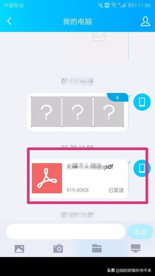 1、首先,在手机上打开QQ,接收电脑发送到手机的文件。