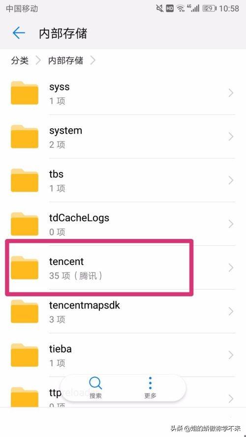 4、进入“内部存储“后,找到”tencent“文件夹进入。