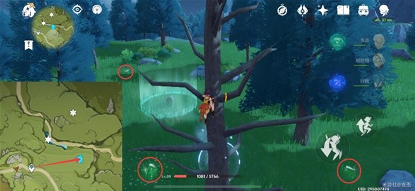 风屏障内有个珍贵宝箱(5原石),可以从树上飞下来获取