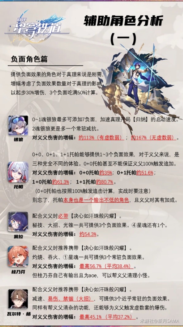 以下各角色的提升率均是在义父+该角色双人的情况下计算的。