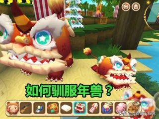 3、年兽 首先要使用新春烟花三种特色烟花攻击年兽,让年兽进入惊吓状态(有buff提醒),然后再用喂养一定数量的福球,即可将其驯服。驯服成功后的年兽和驯服的狼一样,会安静的趴在地上。注意:驯服后的年兽永久跟随您在迷你世界大陆,也会帮助你攻击怪兽;但也要注意保护自己的年兽宝宝,也可能被怪物击杀,受伤过多后死亡,无法挽救。驯服后的年兽也会随机掉落新春节日道具。