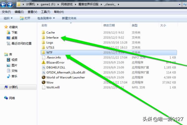 3,进入游戏的目录后,我们将WTF和INTERFACE两个文件进行清空。