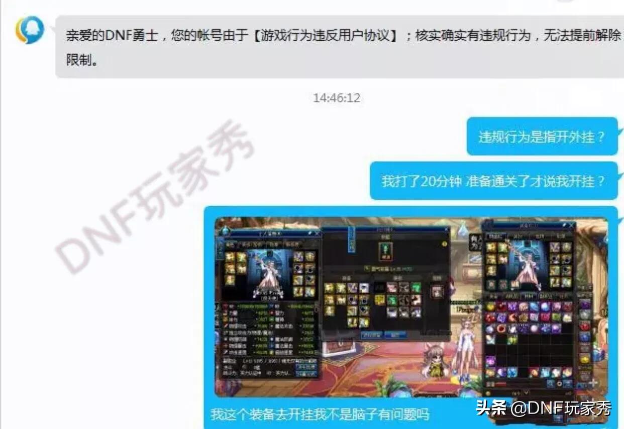 一会儿后,客服发来了“例行公事”的通知,“你的账号由于游戏行为违反《用户协议》,核实确实有违规行为,无法提前解除限制。”玩家对此恨是气愤,“我这么好的装备,我去开挂,我不是脑子有问题吗?”