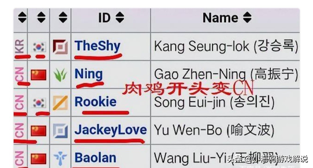 比较有意思的是洲际赛马上就要开始了。那么官方把肉鸡的一个开头换成了cn,那么这个开头和我们国产选手的开头就一模一样的,但是和他一起来到中国发展的韩国选手theshy就没有这个待遇。