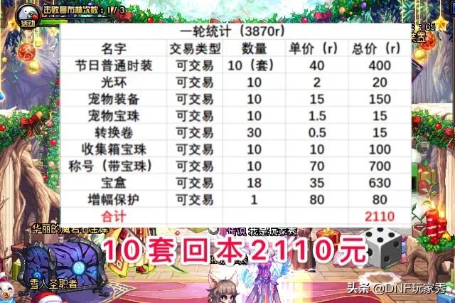 DNF:玩家计算10套春节礼包价格,极限回本2110元,花费1760元,这是如何操作的