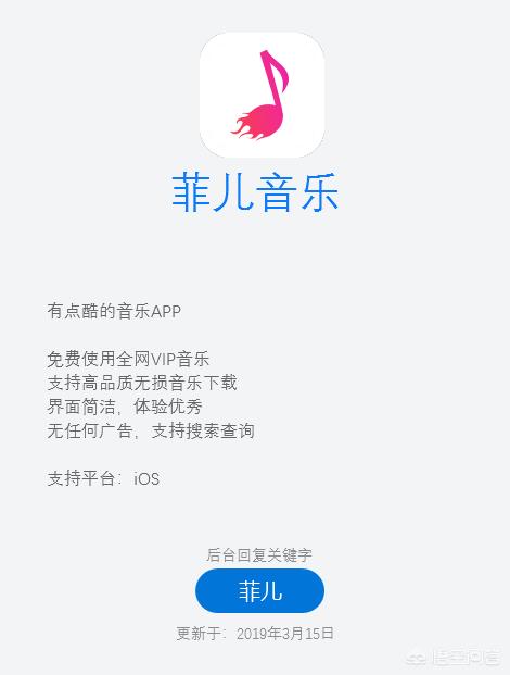 iOS端好用的音乐软件少之又少,很多想听的音乐版本又分布在不同公司,音乐APP要下好几个,反正波老师是受够了。今天分享的这个菲儿音乐就是一个能免费使用全网VIP音乐的好软件,并且还支持无损音乐下载。温馨提示:安装后需要再设置里面安装描述文件验证之后才可以使用。