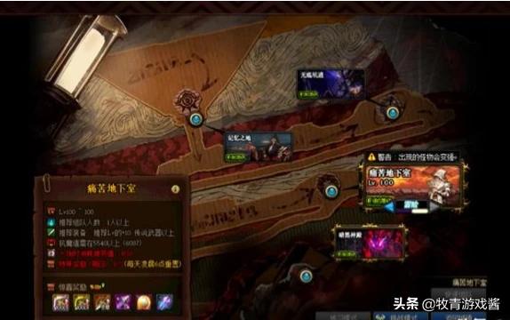 因为100版本有很多副本,而且每个副本都有不同的作用,就像痛苦地下室和暗黑神殿一样,这两个副本我们是可以刷一下的,毕竟不要门票,难度吧算是一般吧,我们可以打普通,爆率一样,冒险的话难度还是比较大的,打造不好的就不推荐冒险了,如果你找不到副本,你可以直接用米娅通讯器或者瞬间移动药剂移动得到比拉谢尔号,点击蓝色的大电视机,就看到了。