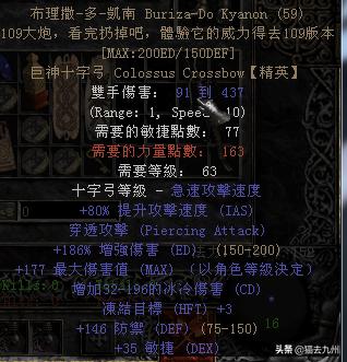 1.09版本的神器,那个时候试问哪个亚马逊不想拥有此等神器呢?冰伤,高ED,穿刺攻击,高额敏捷加成,种种优良属性让刷到它的玩家瞬间起飞。