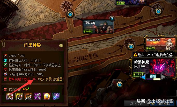 (2)刷每日副本“痛苦地下室”和“暗黑神殿”,共32点疲劳,也是每日必刷,直到史诗毕业。剩下的疲劳刷深渊,直到票刷光或者史诗毕业。