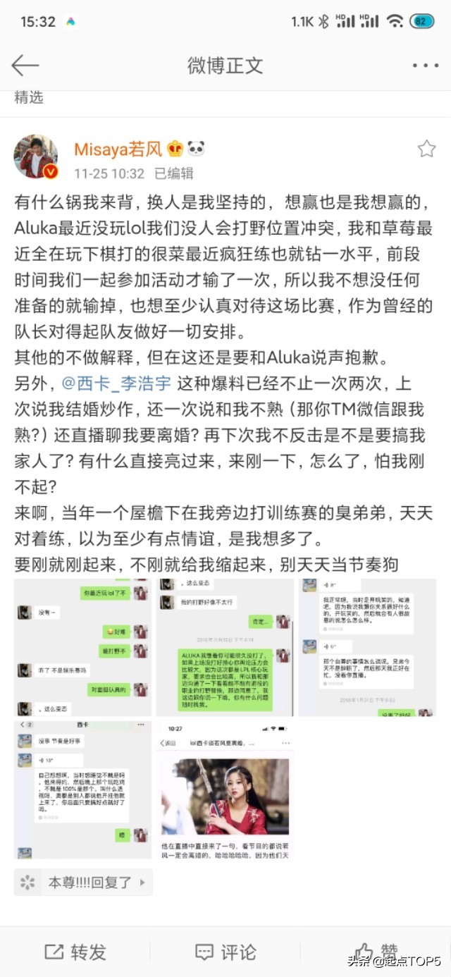 起因是这两天的德云色直播中西卡爆料了这次若风选人事件,本应由Aluka担任的打野位置被太想赢的若风换成了Melon,私自调整阵容将Aluka踢出队伍,如果你是LOL老玩家那么对Aluka应该不会陌生,其实Aluka得到消息要上场所以这几天一直在练习英雄联盟,结果没想到若风劝退Aluka临阵换上了Melon,因为西卡的爆料,导致了许多老WE粉丝以及一些网友的看不惯。