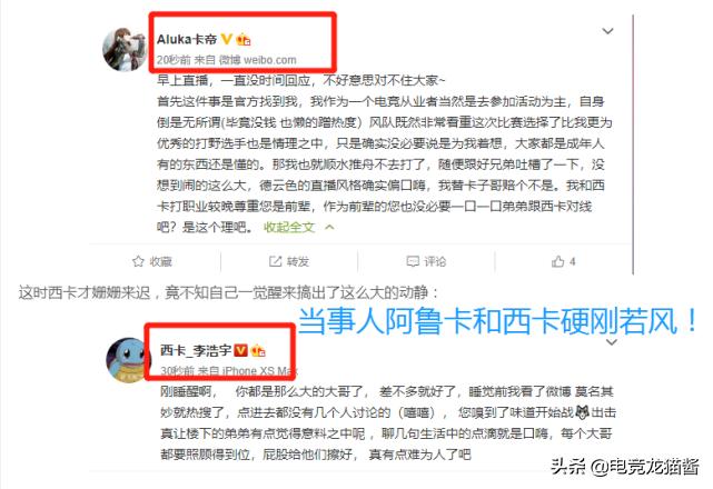 而在西卡的一次直播中,人们终于知道了事情的真相,原来是风队,也就是前WE队长若风跟原WE上单阿鲁卡私聊了一番,让他不要参与打野,而且给出的理由极其有趣,直言这次LPL全明星他很重视,为了他好,所以才让阿鲁卡不要参赛的,而阿鲁卡自己则是回复了OK。本来这事吧,也就没什么下文了。结果若风突然在微博开始引战,直言西卡在直播间口嗨,并且还表示阿鲁卡是自愿不去的,表示西卡不要阴阳怪气等等,这下问题可就闹大了。