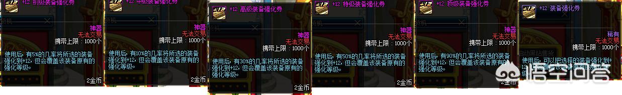 里面价值最高的当然得数12强化券,一共有6种12券,这么一看拿到12券的几率是不是比较高啊?其实这只是错觉,历史上开出12券的玩家屈指可数。