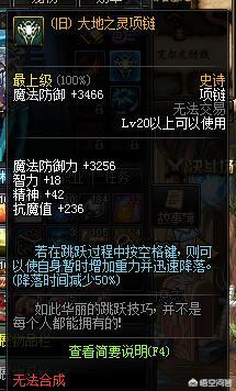 DNF里面有很多奇特的装备,尤其是在早期的版本,一些史诗并不是单一的增加伤害,还有很多奇妙的作用。比如下面这个项链,就有一位玩家找了出来,在一个很久没有上过的小号上面,效果是“在跳跃的时候快速降落”,这真的有用?