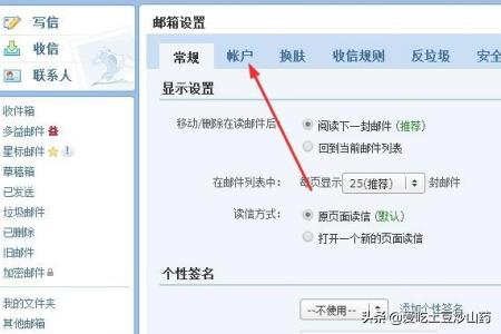 3、在邮箱设置中,点击上方的“账户”选项。