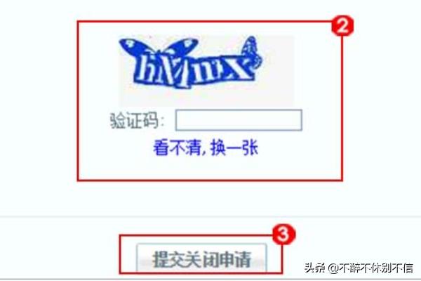 2、通过帐号密码登录注销页面后,请根据页面中的提示填问写卷调查、图形验证码,然后点击【提交关闭申请】按钮即可完成注销(关闭)操作;