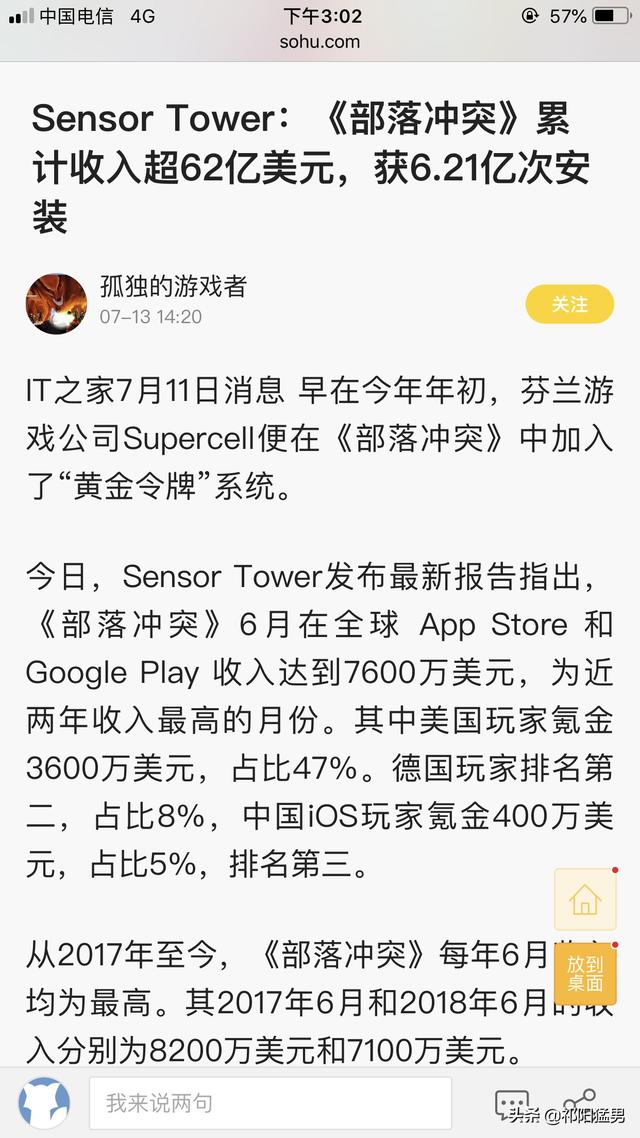 评论一群井底之蛙,没有一个答对的。是部落冲突,累计收入60亿美金,王者荣耀才45亿美金。部落冲突出来7年了,2014和2015是全球手游收入第一名,有两年第二名,其他几年都排进前十的