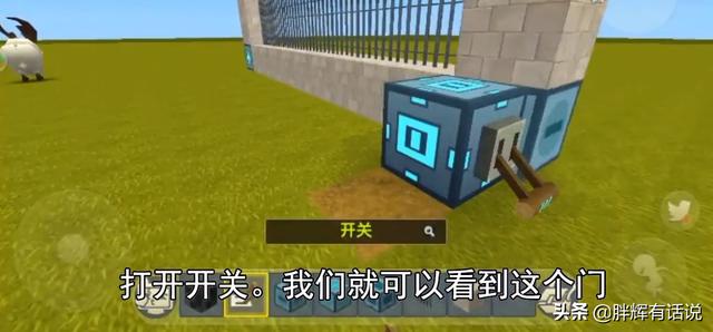第五步:在闪金块上放置开关,这样即可控制门的开关。
