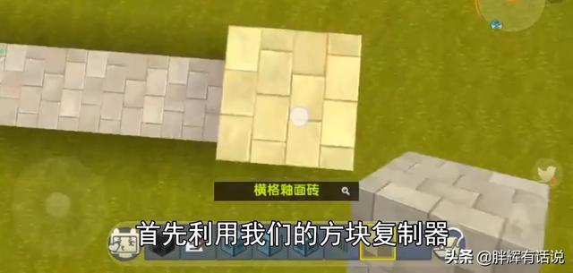第一步:在地上放一个方块复制器后,在上方放上铁栅栏。
