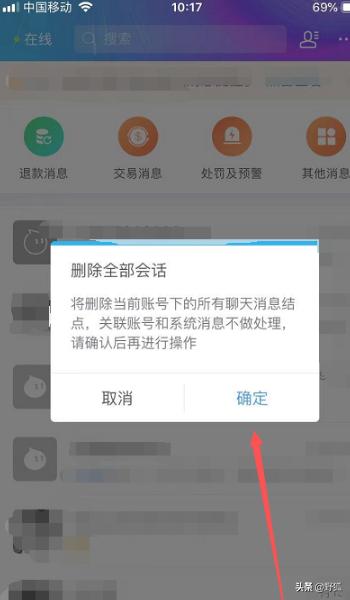 3.点击 删除全部会话 之后,再次确定,那么你的所有旺旺聊天会话记录就会一键删除了