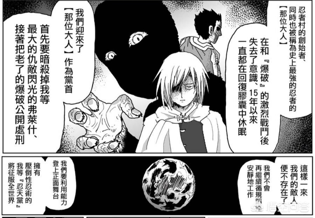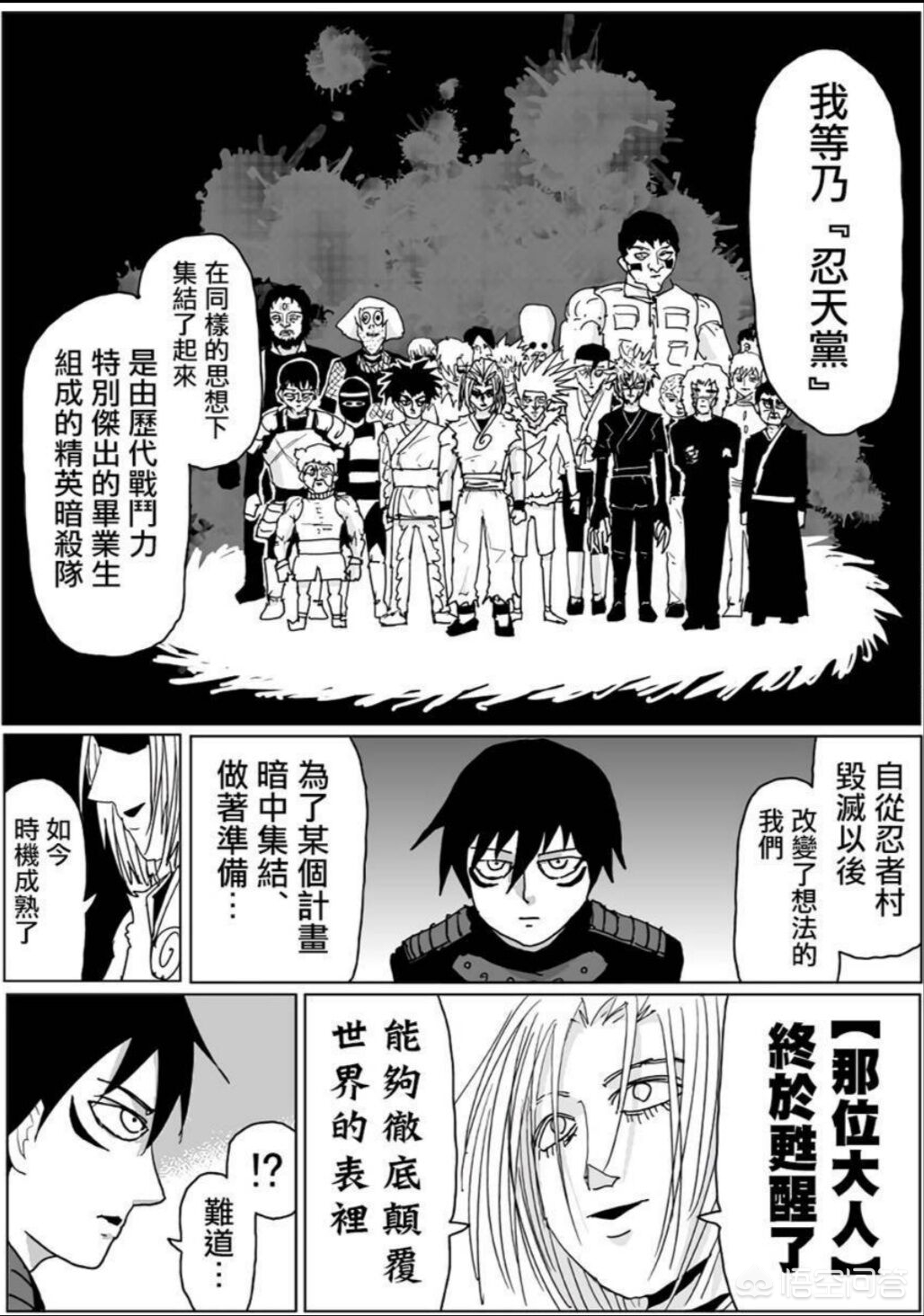 不过忍天党首领的野心比怪人协会还大,还想干掉闪光和爆破并企图征服全世界,且不说有埼玉老师在,就算爆破老了实力也不会像这些忍者想的那样弱,邦古都八十多了不还是一样老当益壮瞬秒两龙。