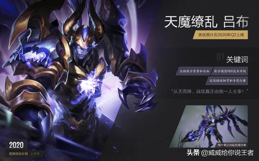 而吕布的天魔缭乱,明显已经不太适合现版本的特效需求以及它的限定价格,官方很早之前就宣布开始重新优化,但是这个皮肤建模比较复杂,体型比较大,改动稍有不慎,就会让玩家感到失望,况且目前上单位置里面,吕布并不是很突显了,所以内部对他的优化速度也就减缓了很多,但是未来半年肯定能上线。