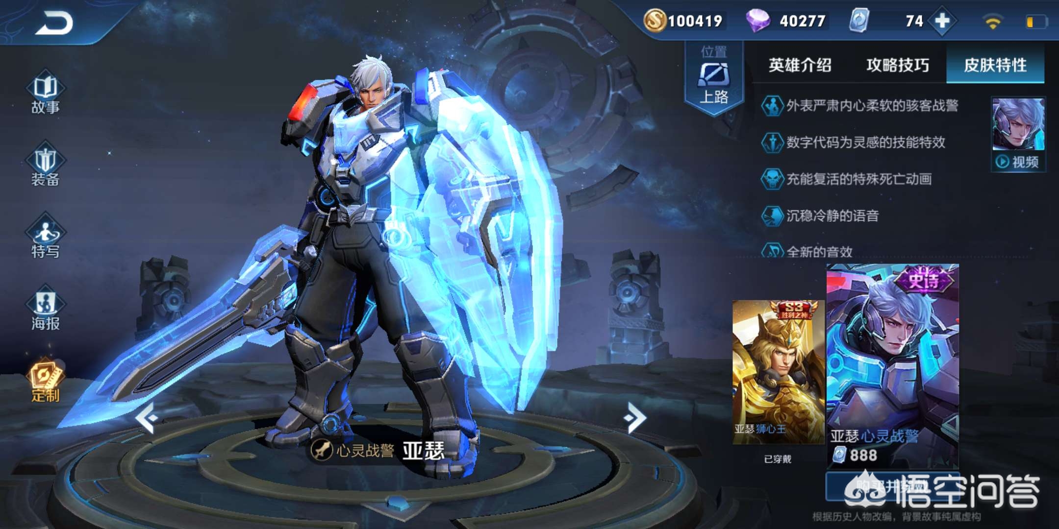 然后第二个就是亚瑟了,大家应该都知道,在峡谷之中,这个英雄绝对是很强势的一位了,很多小伙伴都喜欢使用他上分,但是其心灵战警这一款皮肤的手感真的不想多说,用过的都知道,还不如佩戴死亡骑士!