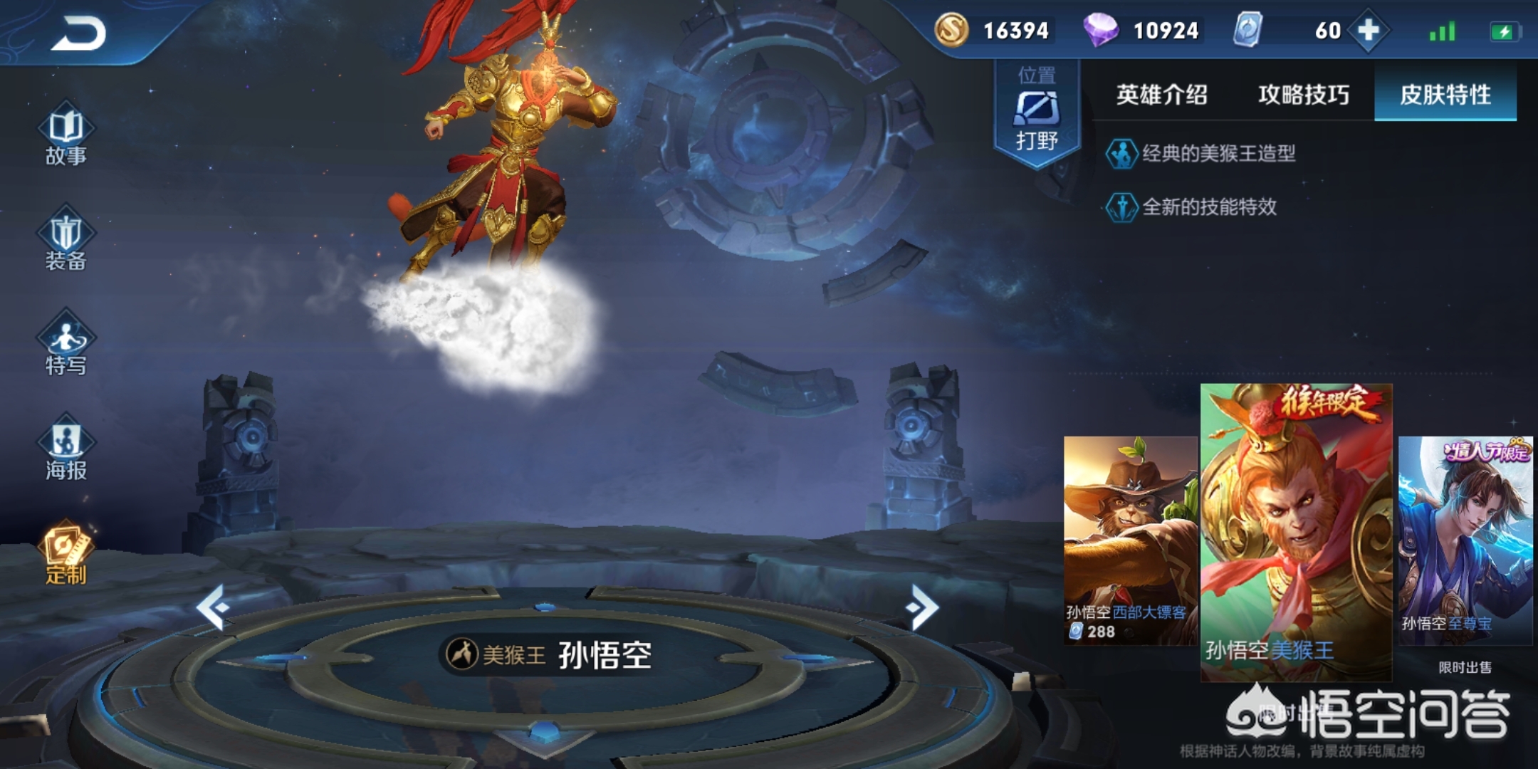 猴子美猴王的这款皮肤是猴年限定皮肤,而且价格也不便宜。个人觉得美猴王这款皮肤很不值,除了外型和原型英雄不一样外,手感基本和原型英雄是一样的,而且这款皮肤没有任何的特效。