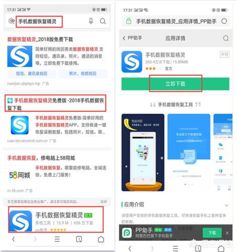 首先,打开手机应用宝,搜索APP“手机数据恢复精灵”。