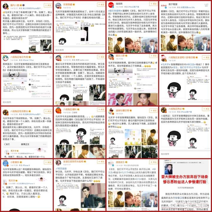 钟汉良的粉丝则有理有据的说出,马天宇是男二,而且马天宇因为戏份涉及到兄妹骨科所以被广电局删改,小编明明记得书中是双男主,今天孙怡发布互动马天宇粉丝依然在女主底下辱骂钟汉良,于是两家粉丝互撕,事件升级。不止如此,还说马天宇本人有本事手撕粉丝,有本事去艾特钟汉良,以及言辞之间不堪入目。更有网友在评论里黑马天宇,说Low。