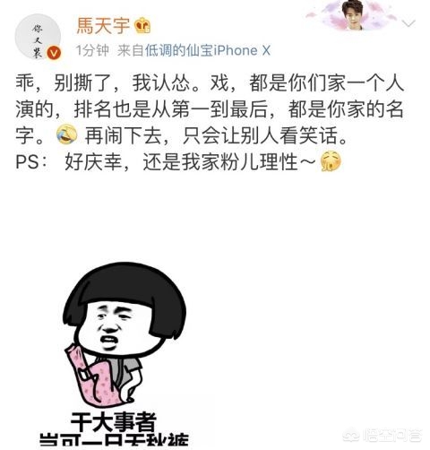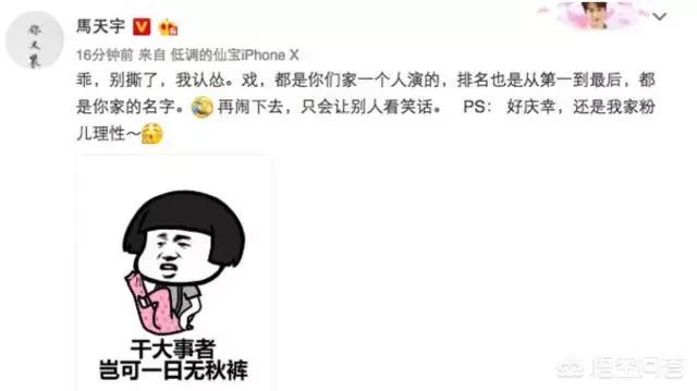 小编不站队,对于马天宇感觉他这个人很干净,不止是长相。拍剧也好,上综艺也罢,跟小孩打交道,都能让他很受欢迎,教到一群朋友。但是说到他手撕钟汉良粉丝?虽然钟汉良粉丝是这么认为的,在小编看来马天宇只是让自家粉丝理性不要跟风。