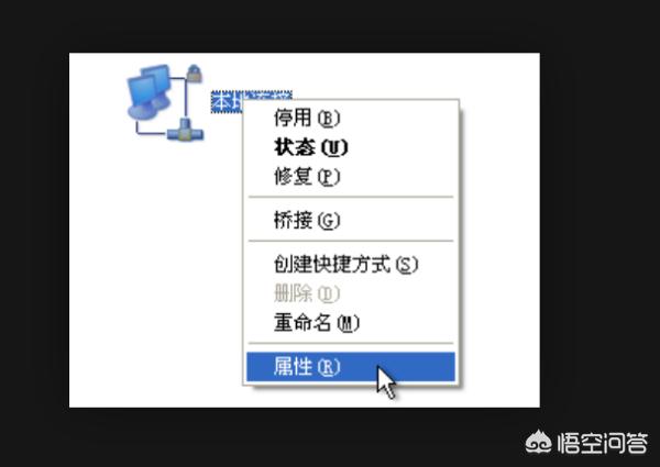 2、第二步,在本地连接的位置上单击鼠标右键选择“属性”选项,双击进入,: