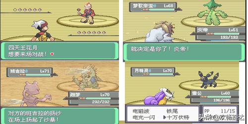 4、第四大天王源治,主要属于的精灵是龙系,克制龙系的属性冰龙。策略是打完暗黑翼龙后,用妙蛙花把要打的精灵弄睡,放出超梦,弄五次冥想,而后一招秒一个。