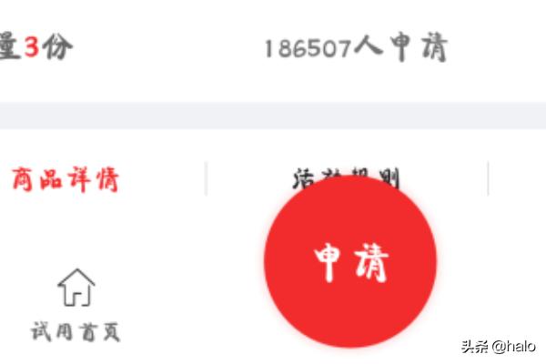 4、点击申请,便会提示出申请中的字样,虽然说一般大件得不了,还有许多小件可以看看,小编通过这个途径“不劳而获”了许多东西,虽然最贵的才1、200.