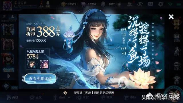 欢送金秋,下周的第一个福利活动就是新英雄西施的上限,还有就是她的专属头像框的上架,这个英雄的可玩性是非常的高,因为目前还没有其他英雄有这种可以移动其他英雄的机制,至于头像框的获取也是比较简单的,大家记得多参与一下活动就好了。