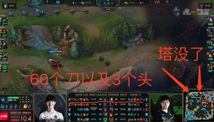 最近春季职业联赛也是开启了线上比赛,在最近的ig对战vg的对局中,Theshy拿出了排位中练习的上单滑板鞋,在第一局中对Vg上单cube造成了巨大的阴影,在比赛约15分钟的时候,压了凯南60刀,外加三个头,并且拆到了高地!在第二局中,cube实在难受,拿出了奥恩并带了一手虚弱,尽管这样,在比赛进行到15分钟的时候,晒的滑板鞋也足足比奥恩多了57个小兵,同样也是推到了上路二塔处,最后由于shy的巨大优势,导致了VG 0比2惨败。