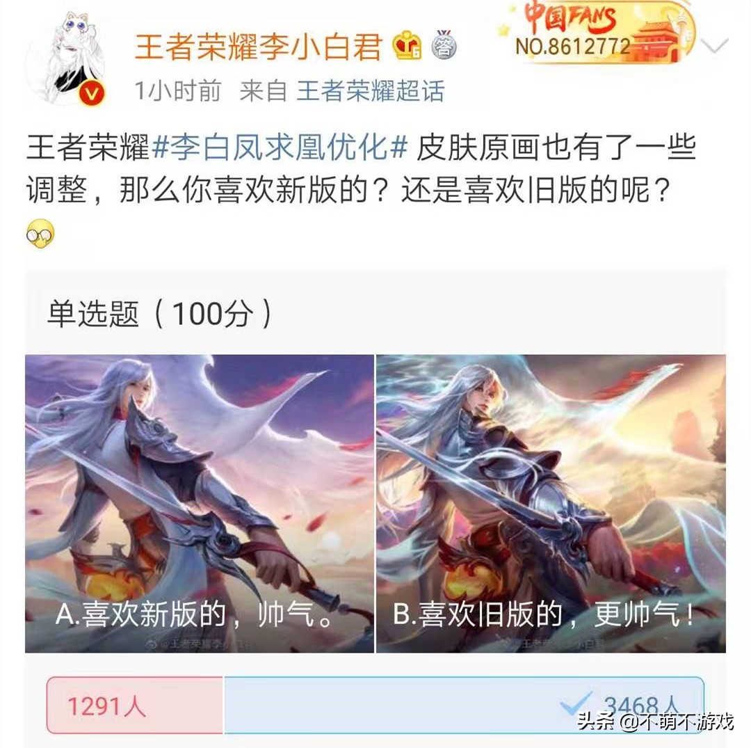 大家好,这里是王者驿站。重磅消息来袭!该划重点了!李白凤求凰优化已经完成,王者荣耀官宣将在春节期间与凤凰于飞一起返场直售,大家是不是想了解全新优化后的凤求凰到底有何变化呢?但是目前网上对于凤求凰优化效果褒贬不一,此事甚至还上了微博热搜,有玩家表示更喜欢老版本,有玩家表示喜欢此次优化!情况到底如何?我们一起来了解下吧: