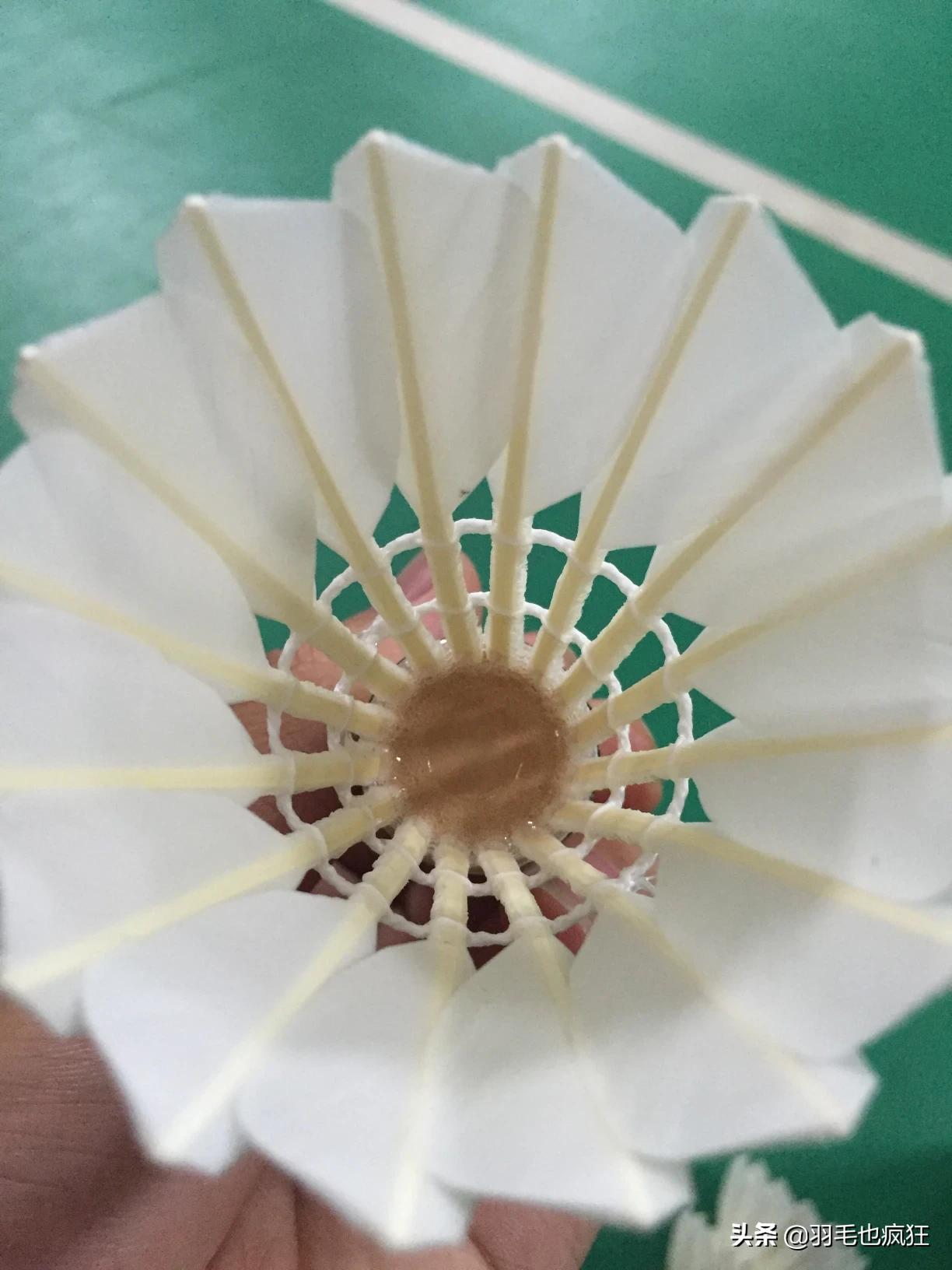 2.比赛用球则为白头羽毛球,也叫室内羽毛球,其底托的用料,内为软木,外包白色羊皮,选料、制作都比较严格。
