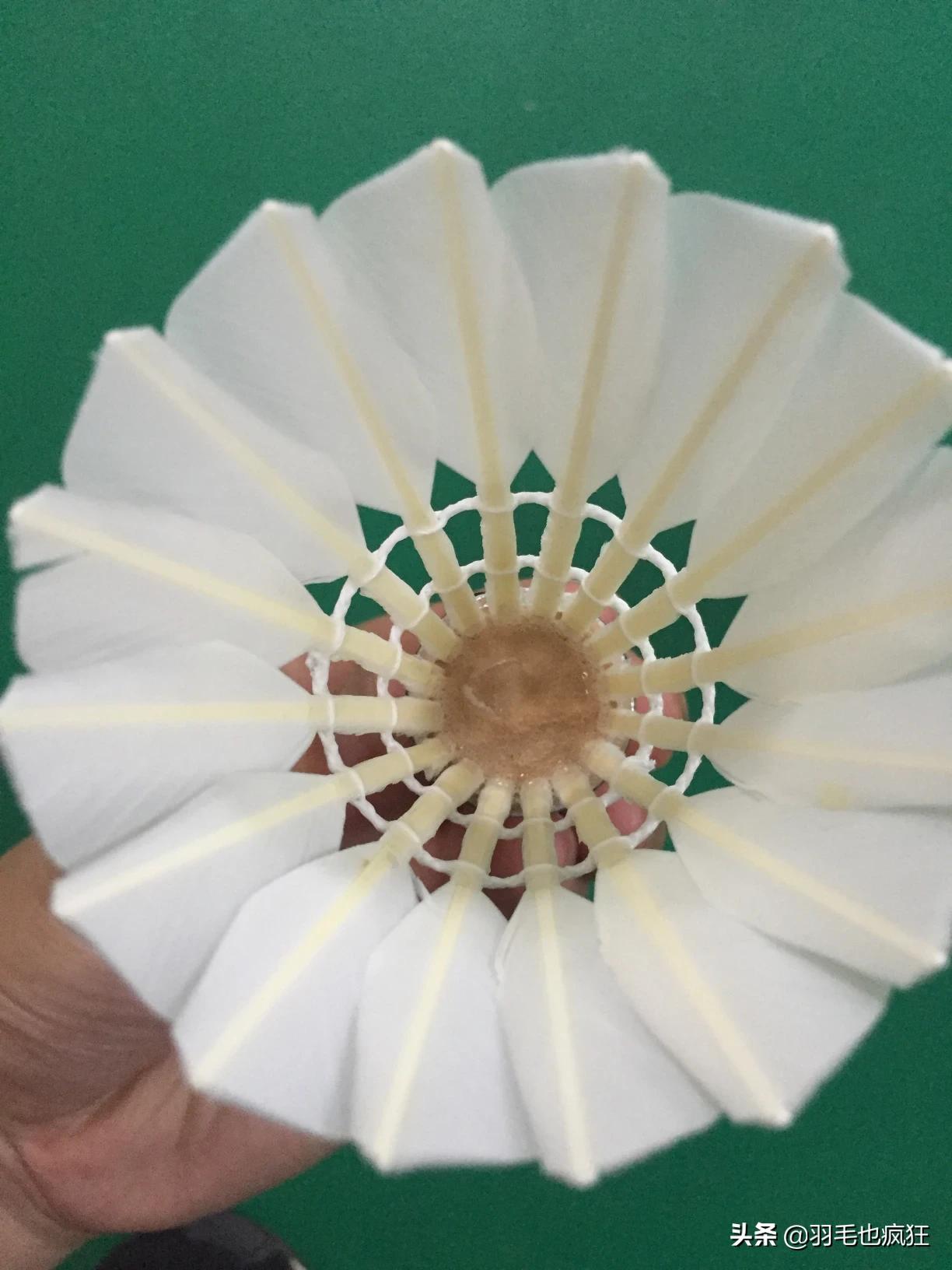 一般用于比赛的羽毛球基本上都是16根羽毛的,重量在5克左右(4.7克—5.3克),而且16根羽毛一般都是鸭子或者鹅两边翅膀上面的羽毛,这类羽毛是比较耐打的。也有很少用到14-15根羽毛,这样的球只能是作为娱乐级别的球。