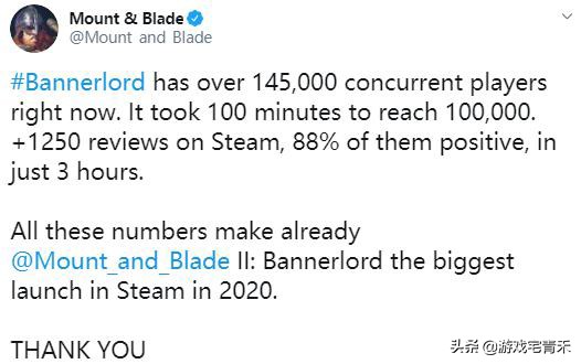 可能是因为等的太久了,一上线就爆了!据官推称《骑砍2》发售不到100分钟在线人数超过10W,3个小时评价达到1250条,且88%好评,这些数据应该可以说明一些问题了。