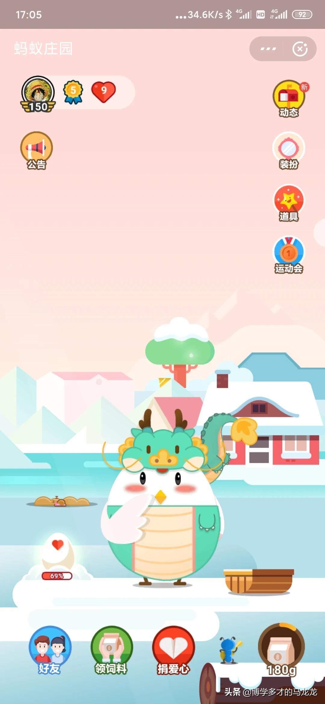 所以在支付宝上,是有了这么一个蚂蚁庄园,可以说类似于我们的电子宠物。每天需要喂食,没有了食物,它还会去隔壁家蹭吃的。而所需的食物,是通过我们线上线下购物所得,另外还有活动的赠送。
