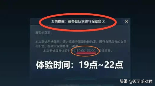 在游戏界面过程中官方还提醒各位玩家要遵循保密协议,体验时间为每天的19:00~22:00,也就是说每天只有三个小时,正常来说的话玩游戏三个小时也差不多了,不过要遵守保密协议的话,也看得出官方对于这个方面还是挺重视的,因为毕竟后面是要打造一款全民级的游戏,现在游戏有一些神秘感也很正常。