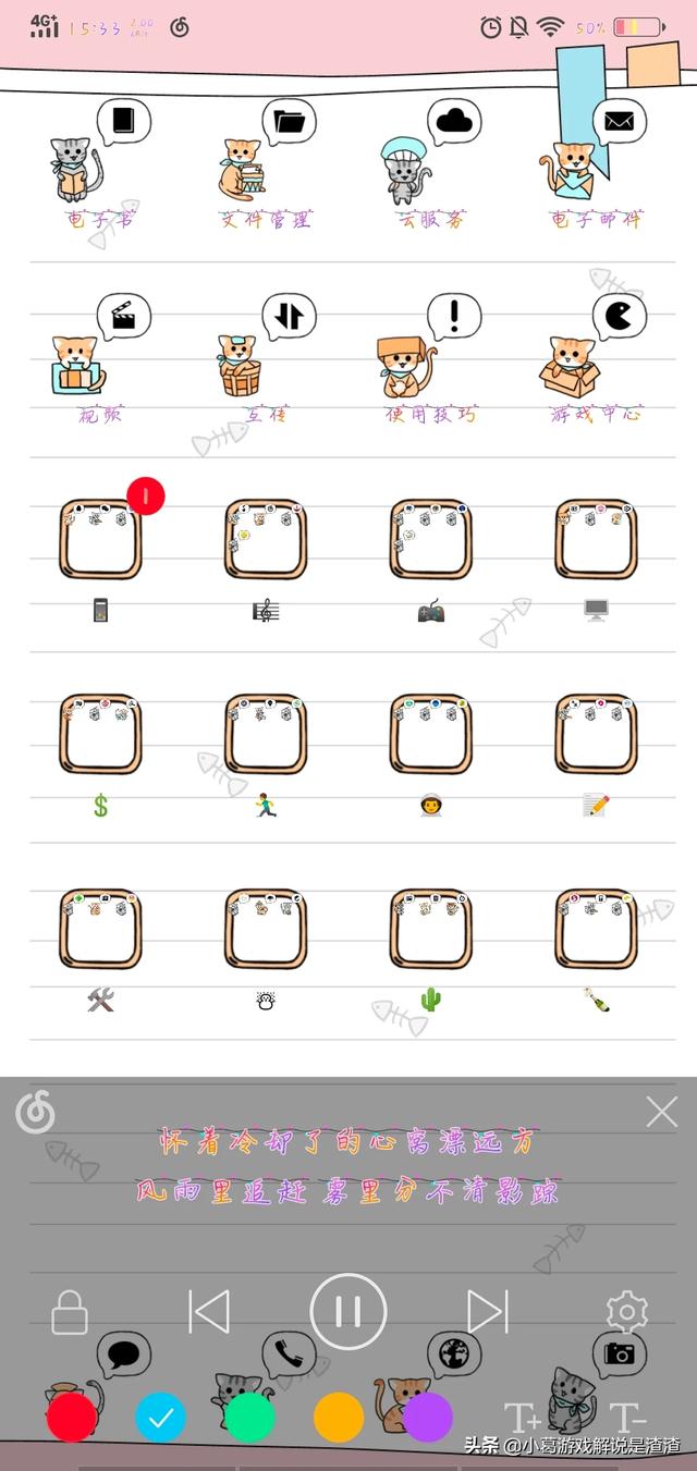 咱们第4步呢就是,你把这个网易云音乐,你不退出后台了吗?退出后台之后呢,你别把这个删掉,删掉你不得重新启动吗?然后呢你就看歌词,你点一下歌词,之后呢就会出现一个像设置里面一样子东西,右下角一个那种像齿轮一样的东西,你点开一下,然后就看到很多颜色在这里呢,因为我这个字体呢,属于是那种彩虹色字体,所以说换不了这种绿色或者是红色还有黄色这样子的,然后你们可以看我截下的图,好吗?